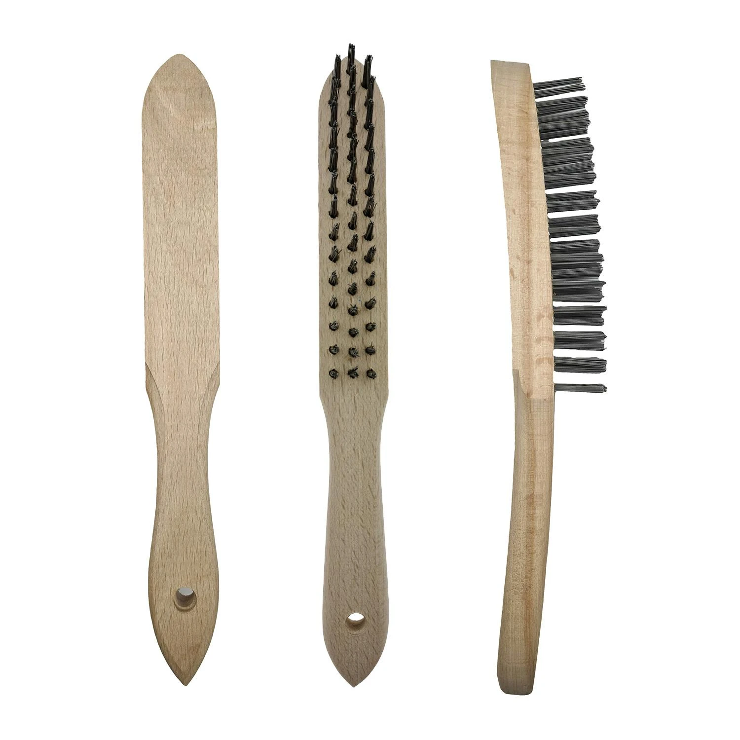 Drahtbürste mit fünf Reihen Stahldrahtborsten, nicht rostfrei, auf massivem Holzgriff