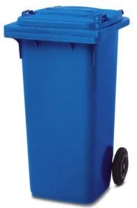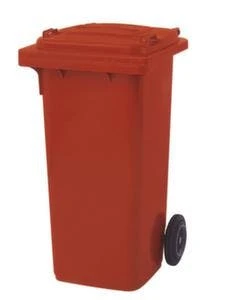 Abfalltonne, Inhalt 120 l, Korpus aus Polyethylen in grau, Höhe x Breite x Tiefe 930 x 505 x 555 mm, für alle marküblichen Entleerungsvorrichtungen, mit Scharnierdeckel, komplett umklappbar, Deckel in grau, Unterbau 2 Räder mit Vollgummi-Bereifung.