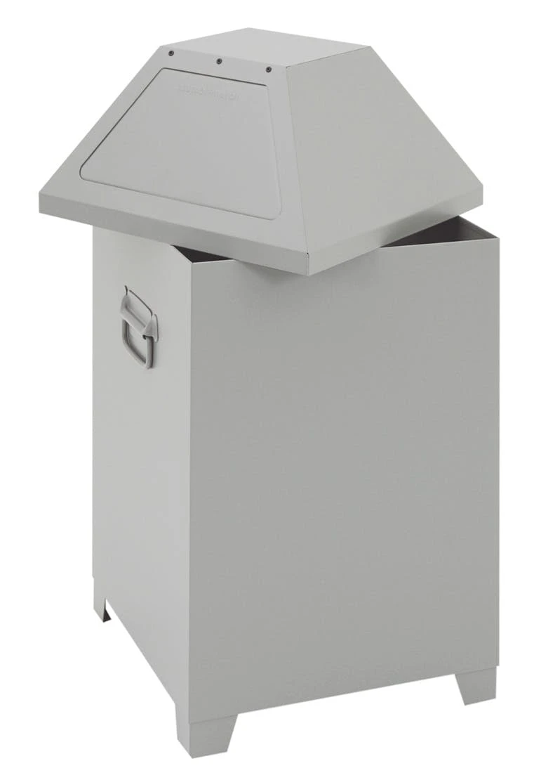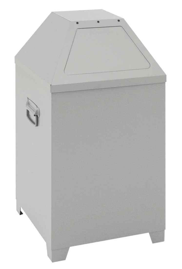 Der einzige Abfallbehälter mit zwei gegenüberliegenden, selbstschließenden Einwurfklappen. Der Industriesammler wird aus verzinktem Qualitätsstahlblech gefertigt und zusätzlich hochwertig pulverbeschichtet. Das Kopfelement ist abnehmbar, der verzinkte Innenbehälter somit leicht zu entnehmen. Fassungsvermögen 95 Liter. Der Sammler wird vollständig in Deutschland produziert und ist TÜV/GS geprüft. Die Herstellergarantie beträgt 5 Jahre. Außerdem ist der Behälter zertifiziert selbstlöschend und als nicht brennbar eingestuft (DIN 4102, Brandschutzklasse A1 bzw. DIN EN 13501-1). Farbgebung Korpus: weißalu-struktur, Farbgebung Kopfelement: weißalu-struktur.