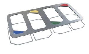 Auflagedeckel, für Abfallbehälter 1 x 100 l, Deckel mit 8 Bechereinwürfe, 1 Löffeleinwurf, aus Aluminium in silber.