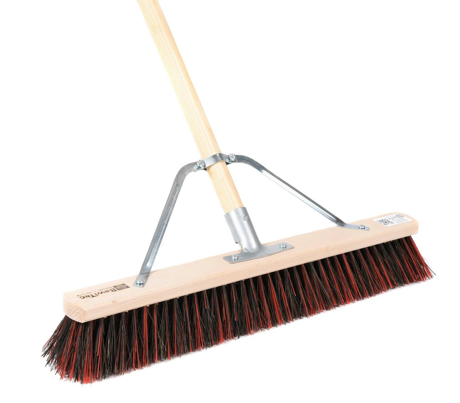 BawiTec Handbesen mit Langstiel -extra langer Stiel -Hartholzkörper – Buche -Arengafaser-Borsten für groben Schmutz -Nass- und öl-beständig -ideal für Werkstatt, Hobby, Haus und Hof.. – Maße: