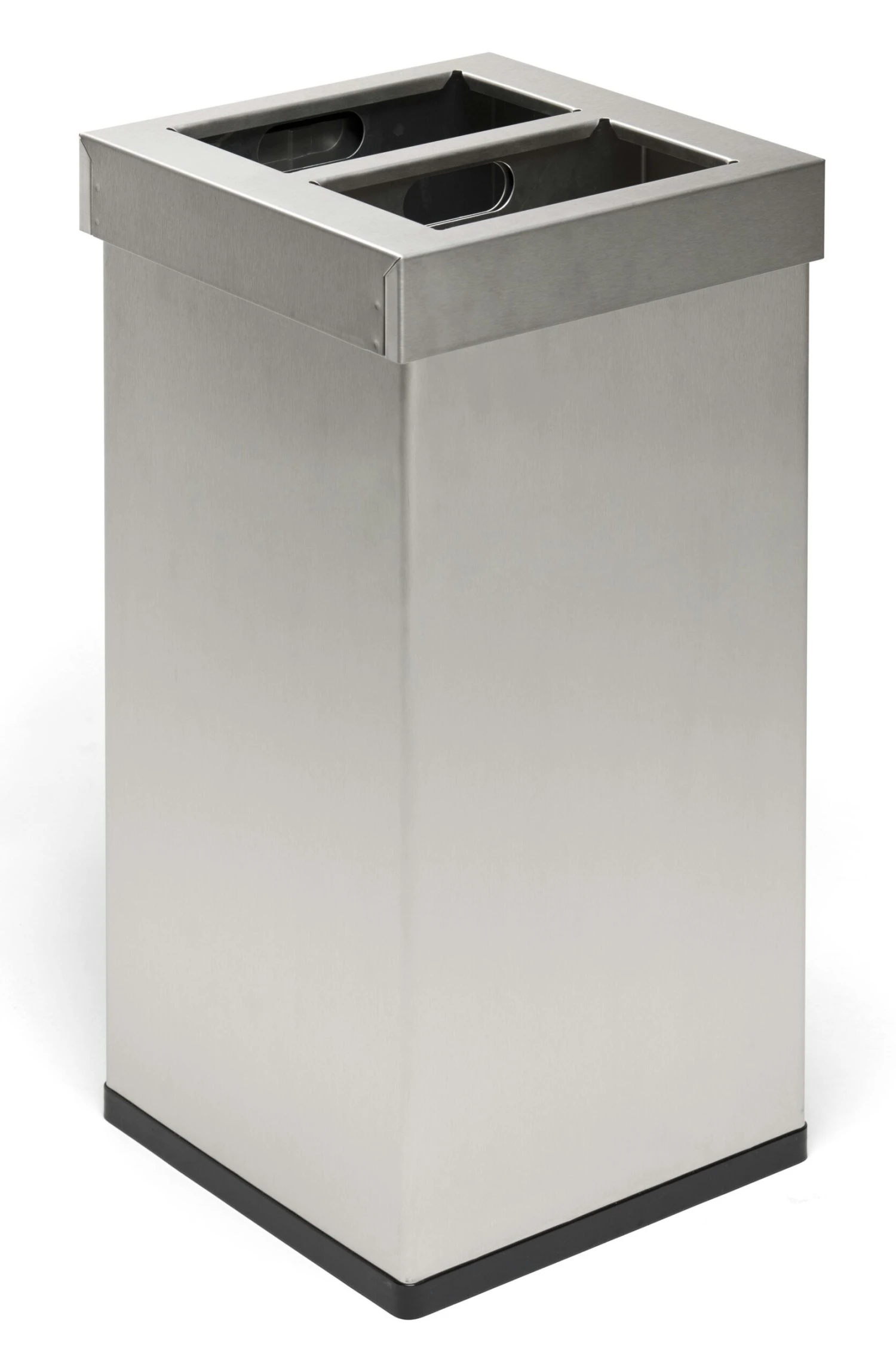 Design Abfallbehälter aus Edelstahl oder Aluminium mit 2 Inneneimer (2x 52,5 Liter) für Abfalltrennung. Inklusive einem Basis-Set Aufkleber.