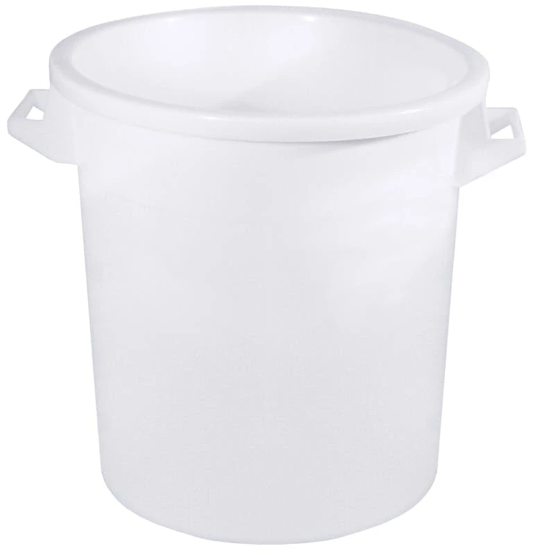 Kunststofftonne, aus weißem hochdichten Polyethylen, temperaturbeständig von -30°C bis +60°C, lebensmittelgeeignet, mit zwei Griffen, in- und aufeinander stapelbar