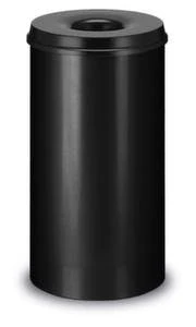 Papierkorb, selbstlöschend, Inhalt 60 l, Höhe x Durchmesser 662 x 375 mm, mit Löschkopf, Kopfteil aus Stahl mit Lackierung in tiefschwarz, Korpus aus Stahl mit Lackierung in tiefschwarz, GS- und TÜV-geprüft.