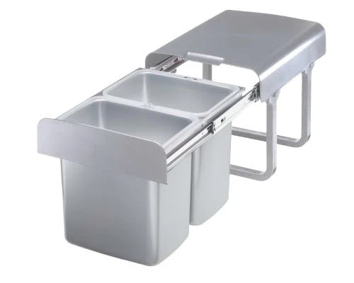 Dieser Abfallsorter ist zum Einbau am Boden des Korpus in den Unterschrank geeignet und dient zur Aufbewahrung von Vorräten oder zur Abfalltrennung. Montiert wird die Abfalltrennung in den 40er Unterschrank und besitzt zudem flexible Kombinationsmöglichkeiten.