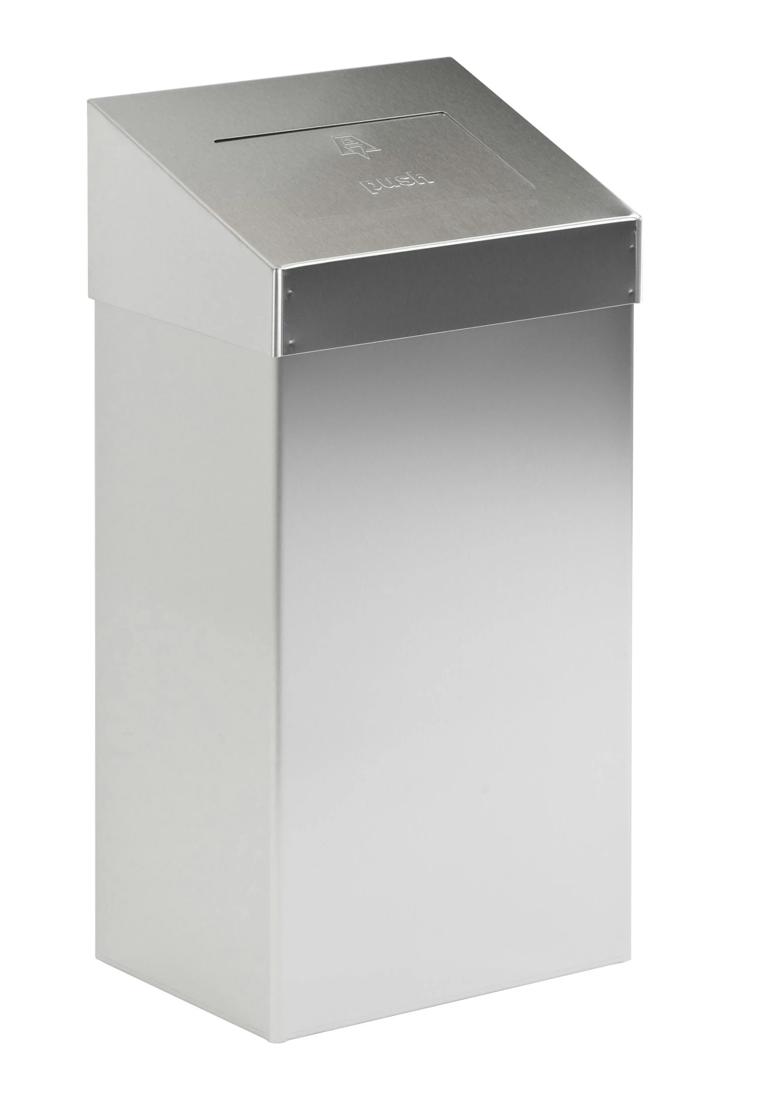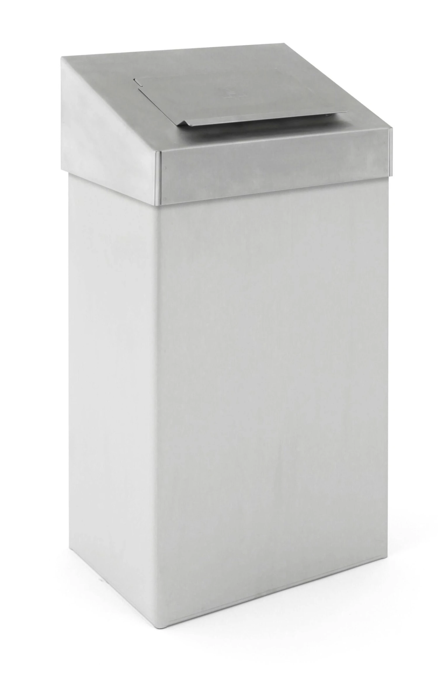Geräumiger, stilvoller Abfallbehälter aus matt Edelstahl mit offenem Oberteil. Ausgestattet mit Inneneimer aus Kunststoff und Fingerabdruck Proof Beschichtung.