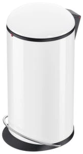 Edelstahl-Tretabfallbehälter, Inhalt 20 l, Höhe x Durchmesser 642 x 308 mm, Klappdeckel Öffnung mit Fußpedal, Innenbehälter aus Kunststoff, Klemmring zur Sackbefestigung, einfache Entleerung über Deckel, Korpus aus Edelstahl, Deckel aus Edelstahl.