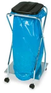 Müllsackständer, für 120-Liter-Säcke, Höhe x Breite x Tiefe 1030 x 430 x 450 mm, Klappdeckel Öffnung manuell, Gummihalterung zur Sackbefestigung, Gestell aus Aluminium/Kunststoff, Deckel aus Kunststoff in grau, Unterbau 4 Lenkrollen, Lieferumfang inkl. Aufkleber zur Wertstofftrennung.