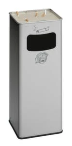 Kombiascher, Höhe x Breite x Tiefe 660 x 230 x 230 mm, Korpus aus Stahl verzinkt mit Pulverbeschichtung in blau, mit herausnehmbarem Kippensieb, Aschereinsatz aus Aluminium, ohne Schutzdach, Lieferung inklusive Piktogramm-Aufkleber.
