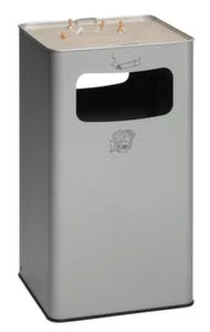 Kombiascher, Höhe x Breite x Tiefe 660 x 230 x 230 mm, Korpus aus Stahl verzinkt mit Pulverbeschichtung in rot, mit herausnehmbarem Kippensieb, Aschereinsatz aus Aluminium, ohne Schutzdach, Lieferung inklusive Piktogramm-Aufkleber.