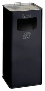 Kombiascher, Höhe x Breite x Tiefe 700 x 320 x 320 mm, Korpus aus Stahl verzinkt mit Pulverbeschichtung in blau, mit herausnehmbarem Kippensieb, Aschereinsatz aus Aluminium, ohne Schutzdach, Lieferung inklusive Piktogramm-Aufkleber.