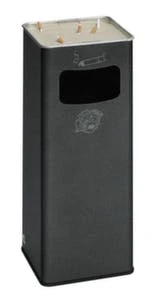 Kombiascher, Höhe x Breite x Tiefe 755 x 430 x 430 mm, Korpus aus Stahl verzinkt mit Pulverbeschichtung in antiksilber, mit herausnehmbarem Kippensieb, Aschereinsatz aus Aluminium, mit 2 Einwurföffnung(en), ohne Schutzdach, Lieferung inklusive Piktogramm-Aufkleber.