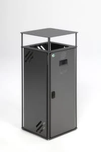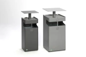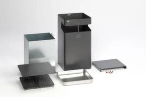 Kombiascher, Höhe x Breite x Tiefe 920 x 450 x 450 mm, Abfallbehälter Inhalt 72 l, Korpus aus Stahl verzinkt mit Pulverbeschichtung in eisenglimmer, Aschereinsatz aus Aluminium, Aschereinsatz herausnehmbar, Innenbehälter herausnehmbar, Behälter mit Bügelgriffen, mit Schutzdach, verschließbar mit Doppelbartschloss.