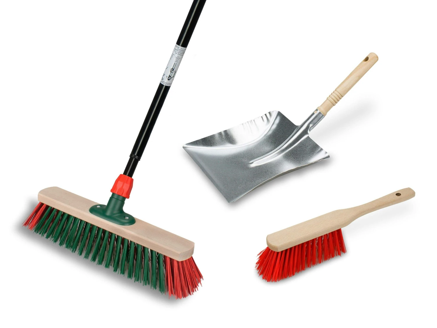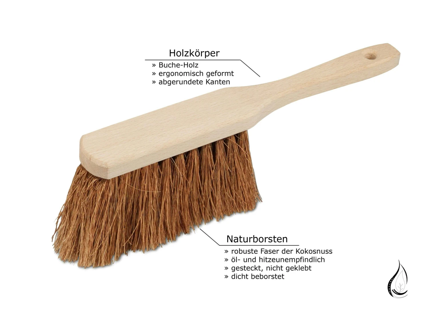 Das `Natur pur` Kehr-Duo im Set!Der Handfeger `Koko` ist die Natur pur – unlackierter Holzkörper, beborstet mit der natürlichen, widerstandsfähigen Naturfaser aus der Schale der Kokosnuss. Die Borsten sind gesteckt, ganz ohne Klebstoffe.Ganz egal ob Sie den Fegeschmutz im Hof aufkehren möchten, oder die Asche im heissen Grill oder Offen auskehren müssen – dieser Handkehrer ist der Generalist unter den Handfegern. Auch Feuchtigkeit und Öl machen ihm nicht viel aus.Ob beim Fliesenverlegen, Tapezierarbeiten oder in der Schlosserei – bei unterschiedlichsten Anforderungen ist der Kokosfaser-Handfeger die erste Wahl.Das verzinkte Kehrblech und der einfache Holzgriff mit Aufhängeloch bilden eine stabile, robuste Einheit auch für den härteren Einsatz auf Baustellen und in der Industrie.Bei der Kantenbreite von ca. 22 cm gestaltet sich das Aufkehren selbst mit einem Strassenbesen und ohne einen Handfeger relativ problemlos. Die Form vom Kehrblech gewährleistet, dass der Schmutz beim Aufkehren dort verbleibt. Die klassische Form der Kehrschaufel mit dem Holzgriff entspricht heute immer noch den ergonomischen Ansprüchen.Materialkunde: Kokos-Borste ist eine weiche aber abriebfeste Naturfaser von der Kokosnuss. Meistens wird sie für Besen und Feger für Industrie- und Haushalt, aber auch für Fußmatten und bei Füll- und Dämmstoffen verwendet.