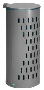Müllsackständer, für 120-Liter-Säcke, Höhe x Breite x Tiefe 850 x 380 x 440 mm, Klappdeckel Öffnung manuell, Korpus aus Stahl verzinkt mit Pulverbeschichtung in antiksilber, Deckel aus Metall mit Pulverbeschichtung in silber, Wandkonstruktion gelocht mit Klappe, verschließbar mit Doppelbartschloss.