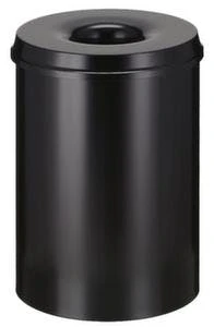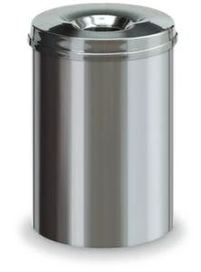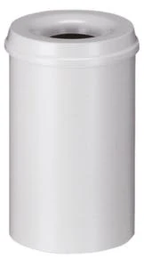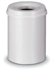 Papierkorb, selbstlöschend, Inhalt 30 l, Höhe x Durchmesser 470 x 335 mm, mit Löschkopf, Kopfteil aus Stahl mit Pulverbeschichtung in grau, Korpus aus Stahl mit Pulverbeschichtung in grau, GS- und TÜV-geprüft.