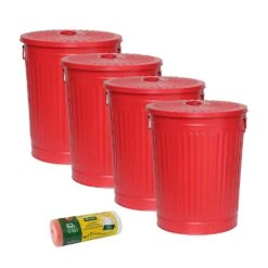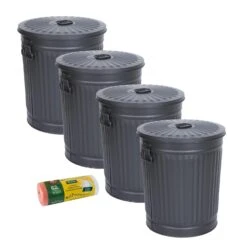 Jinfa 4er-Set Retrodesign Mülleimer Mit Griffen Und Deckel + 30 Müllbeutel | Schwarz | 62L