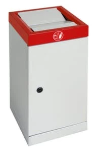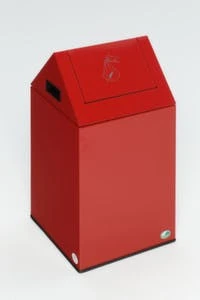 Putzwollkasten, selbstlöschend, Inhalt 1 x 43 l, Höhe x Breite x Tiefe 760 x 405 x 475 mm, Einwurfklappe Öffnung mit Fußpedal, Innenbehälter aus Stahl, Deckel aus Stahl in RAL3000 Feuerrot.
