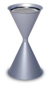 Standascher, Höhe x Durchmesser 730 x 400 mm, aus Stahl, Korpus verzinkt mit Pulverbeschichtung in RAL7021 Schwarzgrau, Eieruhrform, mit herausnehmbarem Kippensieb, ohne Schutzdach, Lieferung inklusive Piktogramm-Aufkleber.