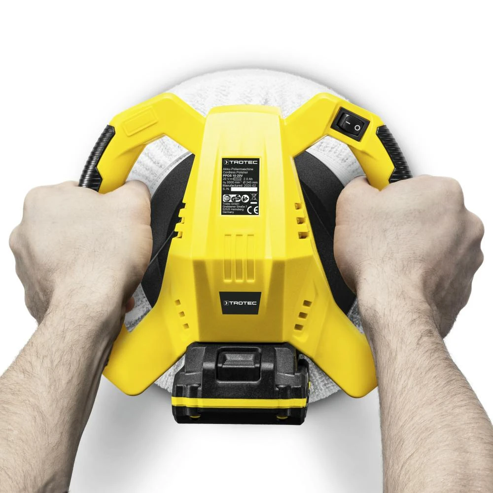 Kraftvolle 3.000 Umdrehungen pro Minute, ein vergleichsweise großer Polierteller mit einem Durchmesser von 245 mm sowie die ergonomisch geformten Handgriffe, mit rutschfesten Grip-Einlagen, garantieren einen schnellen Arbeitsfortschritt und sofort sichtbare Glanzergebnisse. Dank hochwirksamer Exzenter-Bewegung brauchen Sie sich um Polierspuren keine Sorgen mehr zu machen. Maximale Arbeitssicherheit bietet der im Handgriff eingelassene Ein-/Ausschalter, um das Gerät im Bedarfsfall per Daumendruck abzuschalten.
