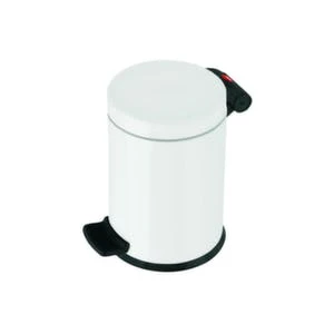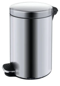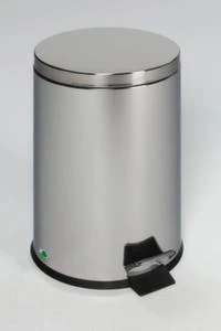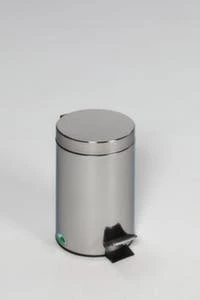 Edelstahl-Tretabfallbehälter, Inhalt 3 l, Höhe x Durchmesser 270 x 170 mm, Klappdeckel Öffnung mit Fußpedal, Innenbehälter aus Kunststoff, Korpus aus Edelstahl poliert, Deckel aus Edelstahl poliert, Unterbau Kunststoff-Bodenring.