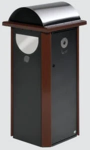 Kombiascher, Höhe x Breite x Tiefe 1300 x 600 x 600 mm, Abfallbehälter Inhalt 120 l, Korpus aus Stahl mit Pulverbeschichtung in RAL6005 Moosgrün, Oberfläche UV- und lichtbeständig, Aschereinsatz Inhalt 4,5 l, Aschereinsatz herausnehmbar, Kopfteil aus Edelstahl, mit Schutzdach, verschließbar mit Doppelbartschloss, einfache Entleerung über Tür.