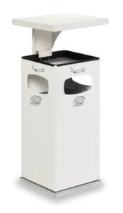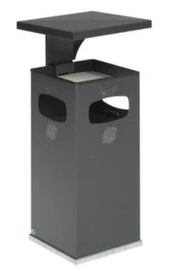Kombiascher, Höhe x Breite x Tiefe 913 x 400 x 400 mm, Abfallbehälter Inhalt 51 l, Korpus aus Edelstahl/Stahl in Holzoptik/antiksilber, Aschereinsatz Inhalt 0,7 l, Aschereinsatz aus Stahl, Gestell aus Stahl mit Pulverbeschichtung in antiksilber, mit Schutzdach, Schutzdach in antiksilber, einfache Entleerung über Tür.
