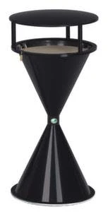 Kunststoff-Standascher, Höhe x Durchmesser 900 x 445 mm, aus Kunststoff, Korpus ähnlich RAL7021 schwarzgrau, Eieruhrform, mit herausnehmbarem Kippensieb, mit Schutzdach, verschließbar mit Vorhängeschloss, mit Bodenronde zur Bodenverankerung, Bodenbereich feuerverzinkt, Lieferung inklusive Montagematerial.