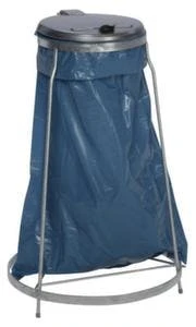 Müllsackständer, für 120-Liter-Säcke, Höhe x Durchmesser 1050 x 370 mm, Klappdeckel Öffnung manuell, Gummihalterung zur Sackbefestigung, Gestell aus Stahl mit Pulverbeschichtung in rot, Deckel aus Kunststoff in rot.