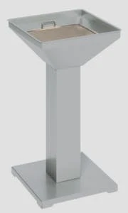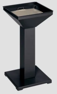 Standascher, Höhe x Breite x Tiefe 730 x 325 x 325 mm, aus Stahl, Korpus mit Pulverbeschichtung in RAL3000 Feuerrot, mit herausnehmbarem Kippensieb, ohne Schutzdach, mit Standfuß mit Fußplatte.