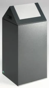 Wertstoffsammler, selbstlöschend, Inhalt 1 x 60 l, Höhe x Breite x Tiefe 800 x 320 x 320 mm, mit Einwurfklappe, selbstschließend, Kopfteil abnehmbar, Klemmring zur Sackbefestigung, einfache Entleerung über Kopfteil, Korpus aus Stahl mit Pulverbeschichtung in antiksilber, Deckel aus Stahl mit Pulverbeschichtung in silber, Unterbau umlaufender Kantenschutz, TüV geprüft.