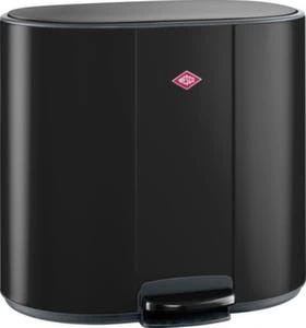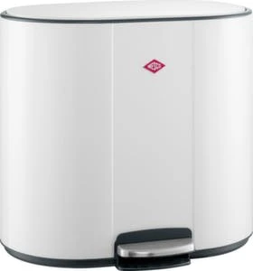 Abfallbehälter, Inhalt 1 x 25 l/2 x 12 l, Höhe x Breite x Tiefe 540 x 585 x 458 mm, Klappdeckel Öffnung mit Fußpedal, selbstschließend und geruchshemmend, mit 3 Einwurföffnung(en), Innenbehälter aus Kunststoff in schwarz, einfache Entleerung über herausziehbaren Innenbehälter, Korpus aus Stahl mit Pulverbeschichtung in mattweiß, 1 Deckel aus Stahl in mattweiß.